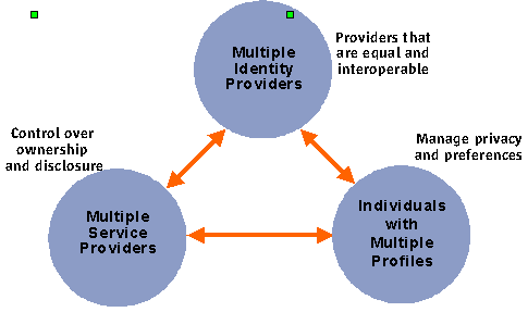 In this case, the HMO and brokerage house play the role of identity provider. Identity providers maintain user profile information and can interoperate among themselves as long as they have permission to do so from the profile's owner, the consumer. Identity providers are expected to compete for your business in the future in the same way HMOs, banks, and brokerage houses compete for your business today.
