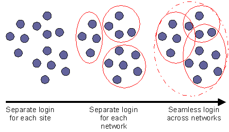 - Distinct identities and logins exist for building access, workstation login, application access, and remote access. Different applications require the user to reenter username and password, which don't interoperate. This makes managing Web properties, applications, identities, and policies nonscalable, and effectively prohibits the interaction (or even the association) of identities across applications or Web services.