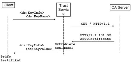 enables PKI services such as trustworthily registering, locating, and validating keys through XML-encoded messages. [On02]
