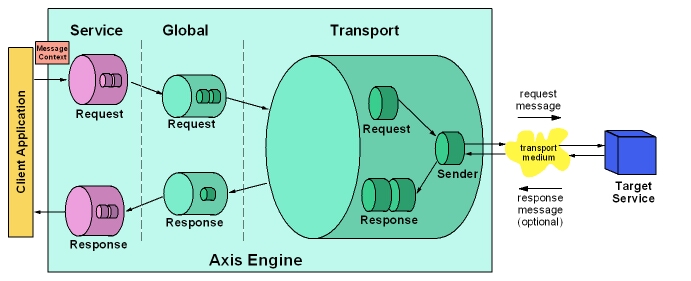 In either case, the Axis framework's job is simply to pass the resulting MessageContext through the configured set of Handlers, each of which has an opportunity to do whatever it is designed to do with the MessageContext.