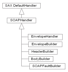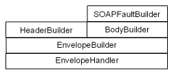 Initially, the SAX handler stack just contains an instance of EnvelopeHandler which represents the fact that parsing of the SOAP envelope has not yet started. The EnvelopeHandler is constructed with a reference to an EnvelopeBuilder, which is the SAX handler responsible for parsing the SOAP envelope.