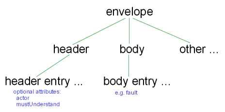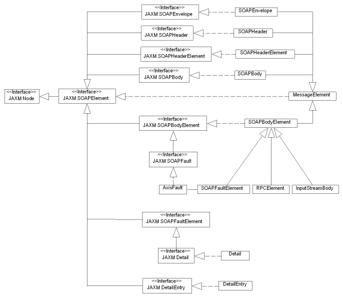 Elements which are not defined by SOAP are treated using a SOAPHandler as a SAX event handler and a MessageElement as a node in the parse tree.