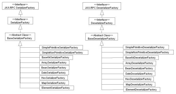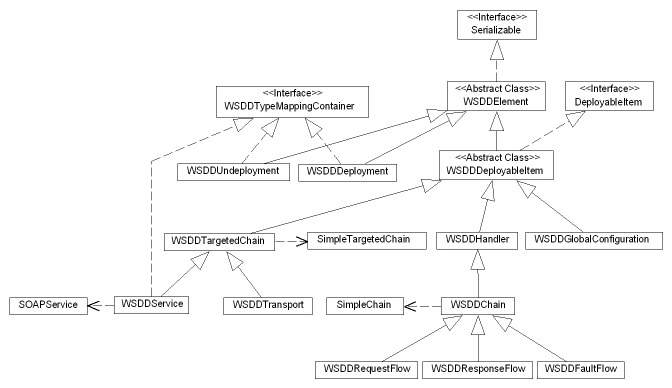 The structure of the WSDD grammar is mirrored by a class hierarchy of factories